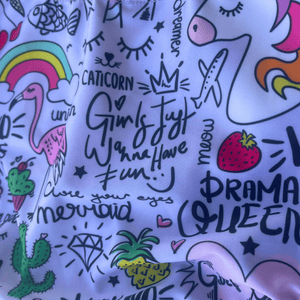 Kikx Extra Life Fastback Swimsuit in Unicorn and Summer Theme on Light Lilac